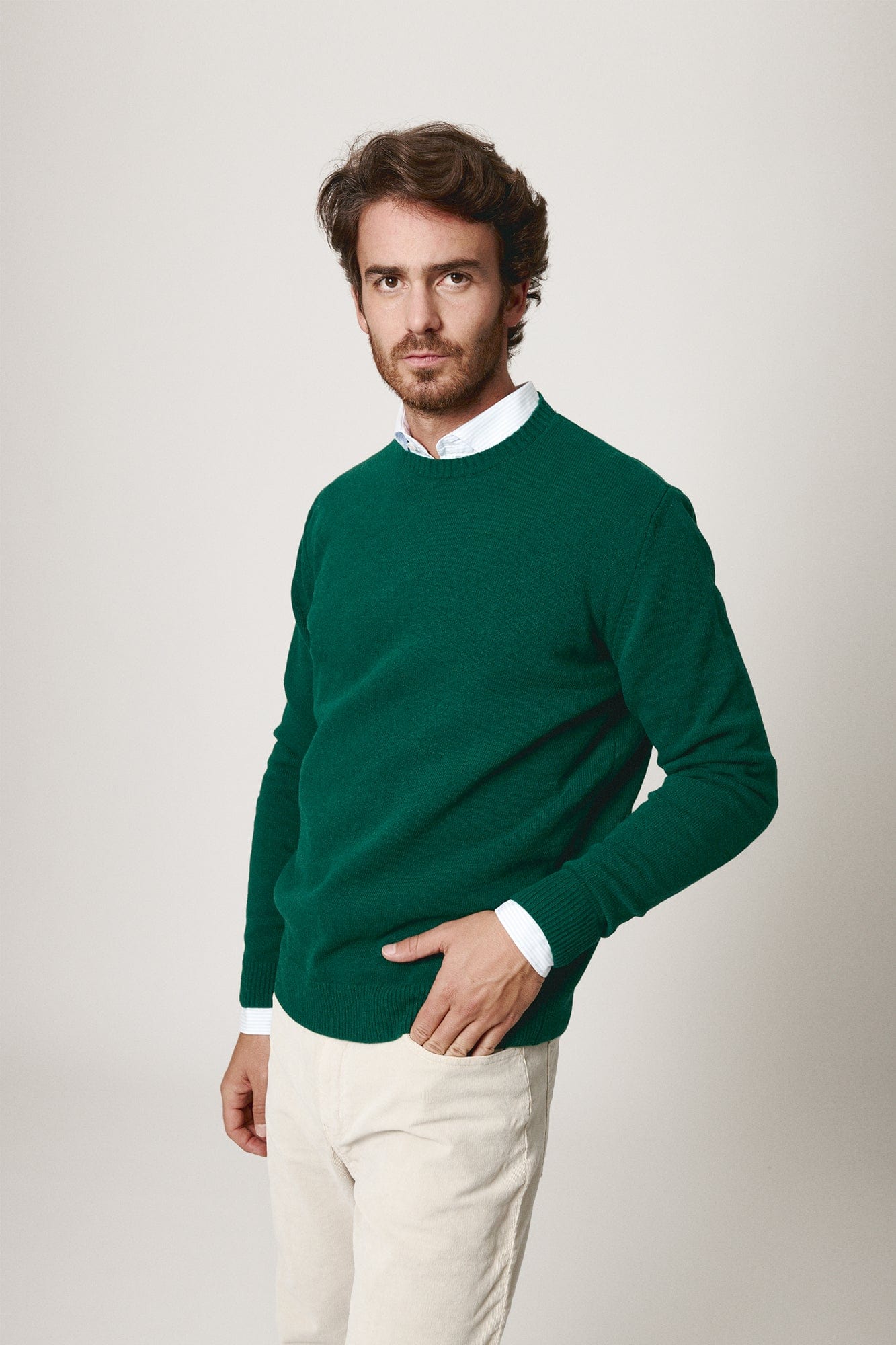 Disfruta de la suavidad y calidad del jersey Lambswool Scoop, elaborado con la lana de primera trasquilada de la oveja.
